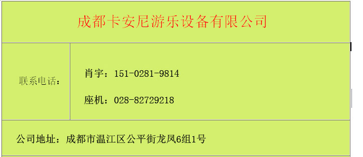 版权所有:成都卡安尼游乐设备有限公司 地址:四川省成都市温江公平龙凤6组1号 电话:028-82729218 QQ在线咨询: 407959182