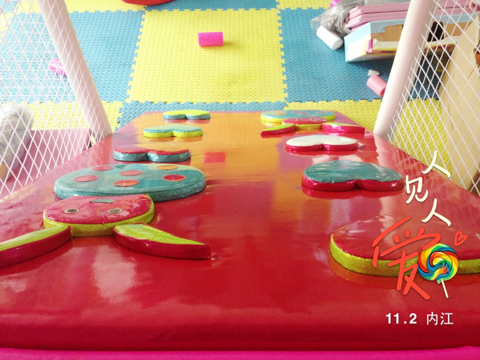 3、彩虹天梯:内部为木制,中间包重泡海绵(符合GB6675-2003标准),最外层包一层进口超强PVC经纬编织闪光革,强度高,安全性能优良,安装时倾角小于30度,符合国家标准。